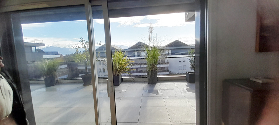 VETRAZ-MONTHOUX (74100) - A proximité immédite de Geneve -Venez découvrir ce très bel appartement type 3 en attique de 70m² avec une terrasse de 40m² -situé au calme et dans la verdure tout en étant proche de toutes les commodités (écoles, commerces, autoroute) dans une jolie résidence de très haut standing trés récente de 2020. Il dispose d'une entrée, d'un beau séjour salon très lumineux orienté sud ouest grace à ses grandes baies vitrées ouvrant sur une grande terrasse de 40m² avec une trés belle vue dégagée sur les montagnes et le Mont Blanc, d' une cuisine équipée ouverte sur le séjour, d'un couloir desservant deux chambres, d' une salle de bains avec douche italienne, meuble vasque , d' un espace de rangement et d' un wc. Grand Garage double en sous sol - Place de parking extérieure. Chauffage gaz -DPE C Prix 438000€ - Nos honoraires sont intégralement à la charge du vendeur. Les informations sur les risques auxquels ce bien est exposé sont disponibles sur le site Géorisques : www.georisques.gouv.fr » Contactez nous. CABINET DODINET au 04.50.26.43.97 ou par mail cabinet-dodinet@orange.fr
